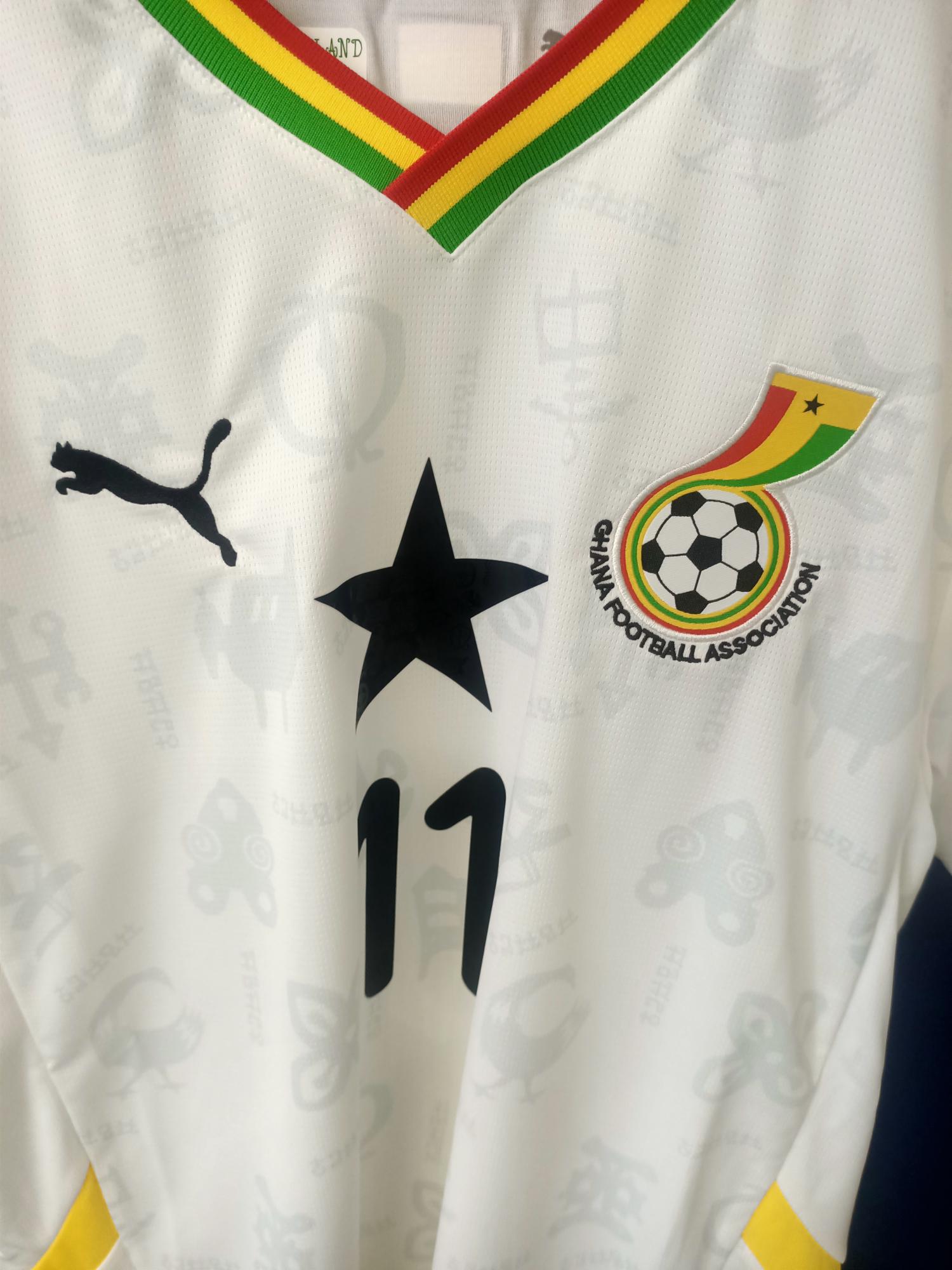 - Details: Ghana Football Association crest embroidered in full color, Puma logos in black, and subtle star-patterned ventilation zones.