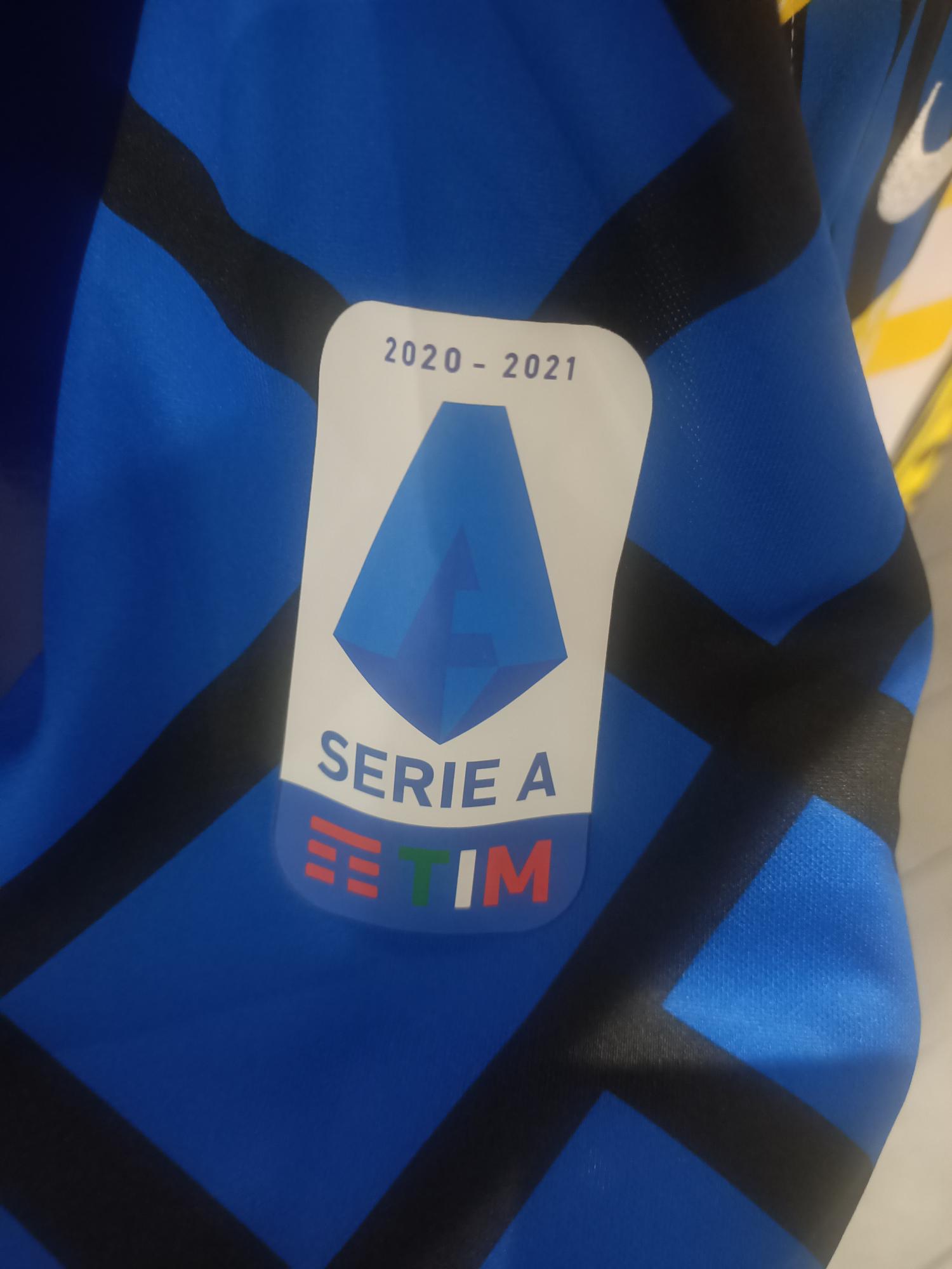 - Details: Embroidered Inter crest, official Serie A Scudetto shield on right sleeve, Pirelli sponsor in black, “Inter” script inside collar.