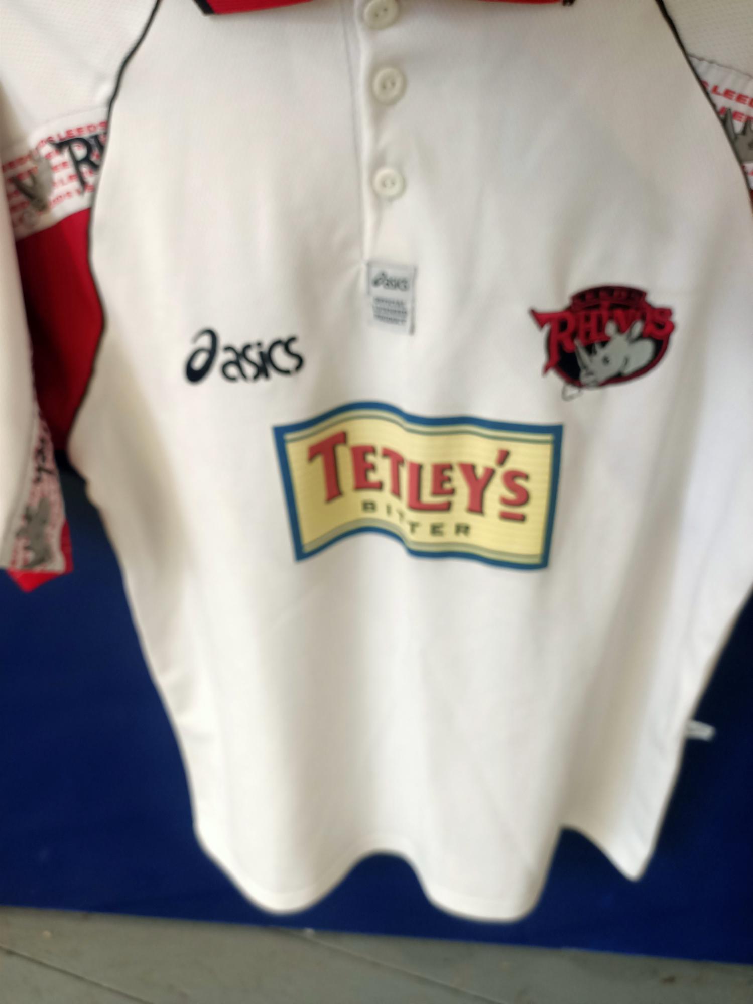 Step back into the turn-of-the-millennium era with this authentic 1999 Leeds Rhinos away shirt, a vintage collectible from the club's Millennium Celebration collection marking 1890-1999. Crafted by ASICS in durable 100% polyester, collar, sleeve details, and the iconic Rhinos logo, capturing the essence of Super League IV where the Loiners finished 3rd but bowed out in the play-offs. Proudly displaying the Tetley's Bitter sponsor logo front and center, it's a testament to an exciting season of growth and competition.