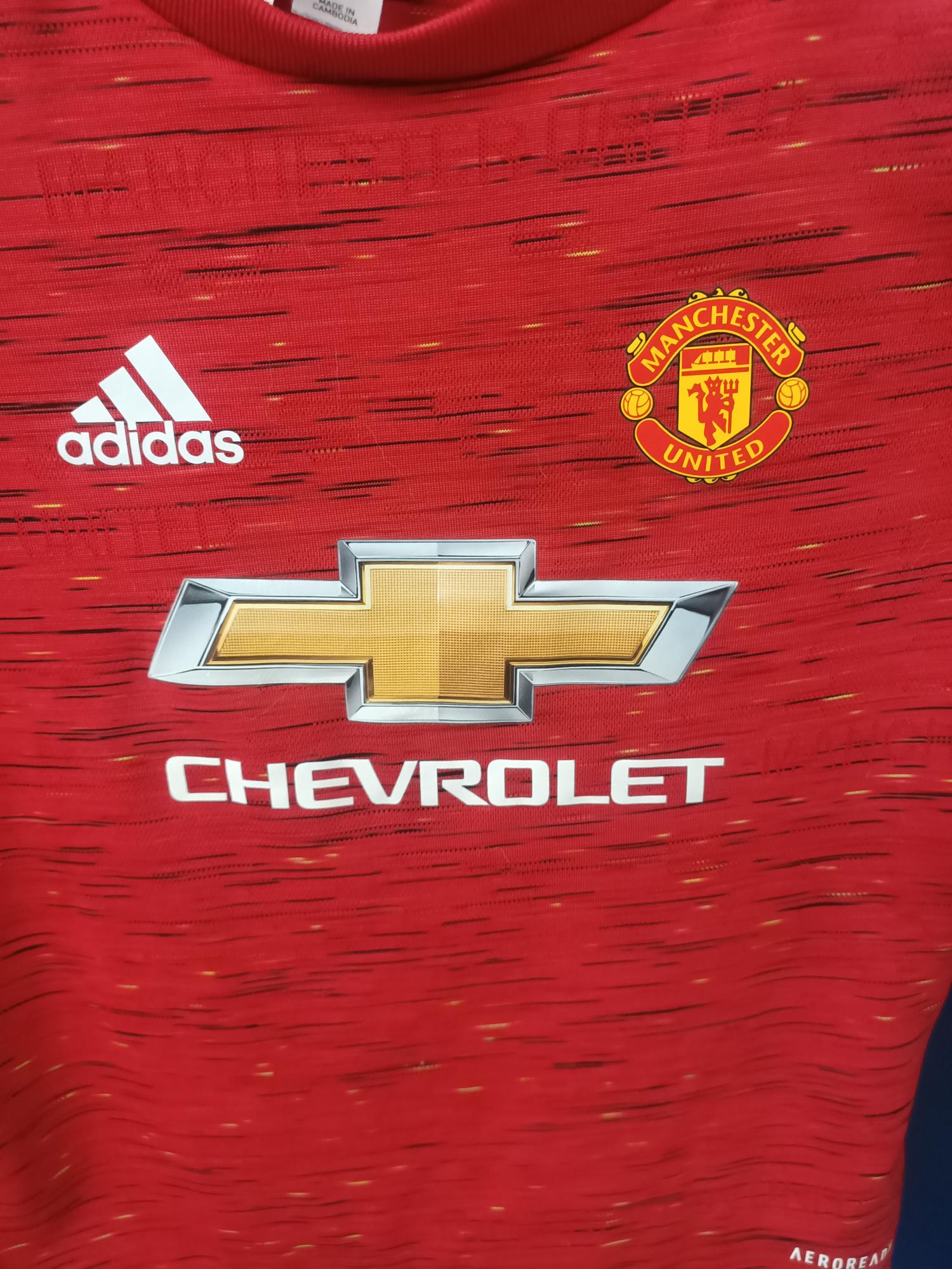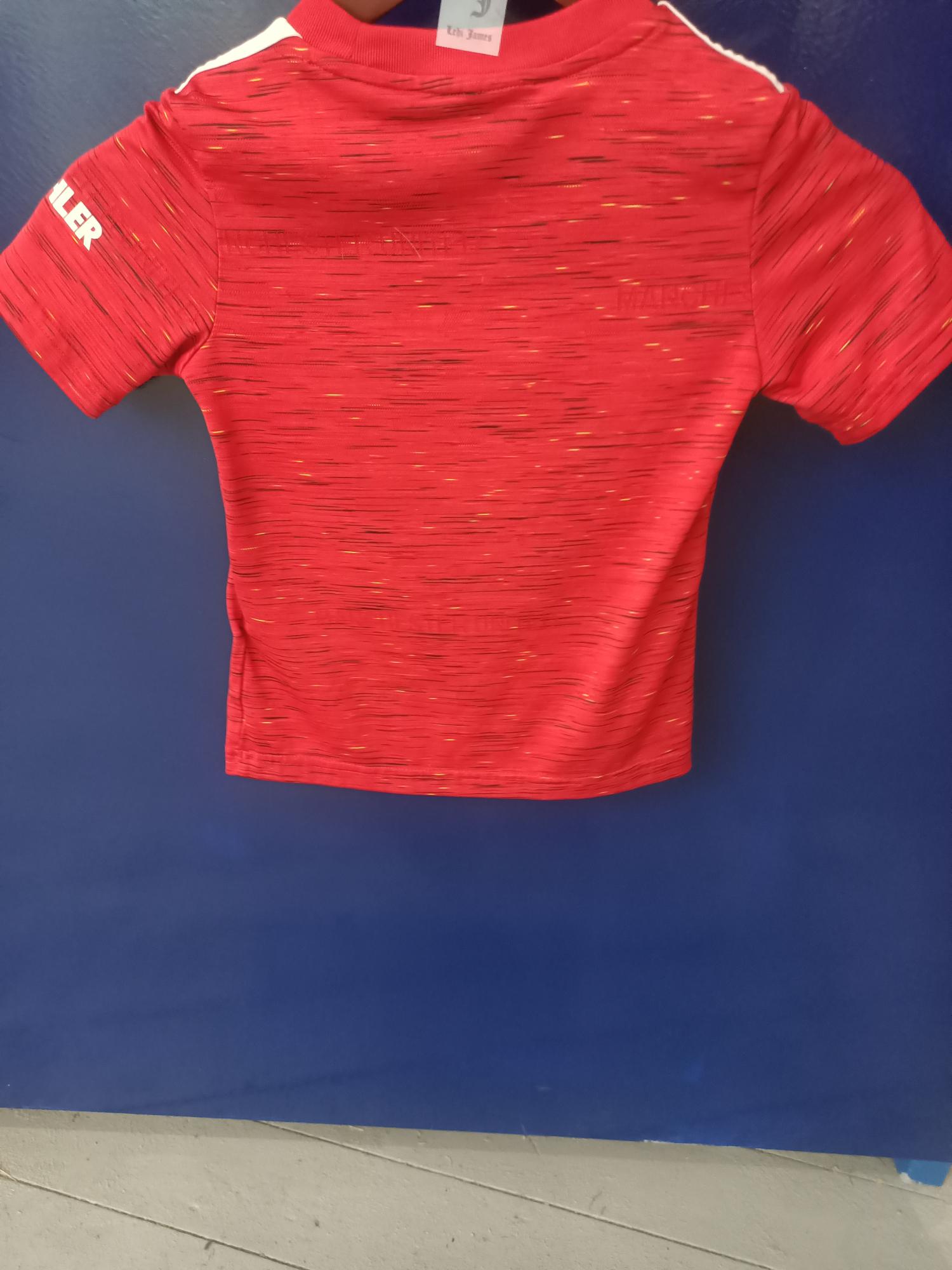 Get your young Red Devils fan ready to roar with this Manchester United 2020/2021 home shirt in excellent condition, designed for children aged 5-6 years. Crafted by Adidas, this iconic red jersey features the classic black and yellow accents, with the legendary Manchester United crest proudly displayed on the chest—a symbol of the club’s storied legacy at Old Trafford. The sleek design captures the energy of the 2020/2021 season, where United thrilled fans with their attacking flair.