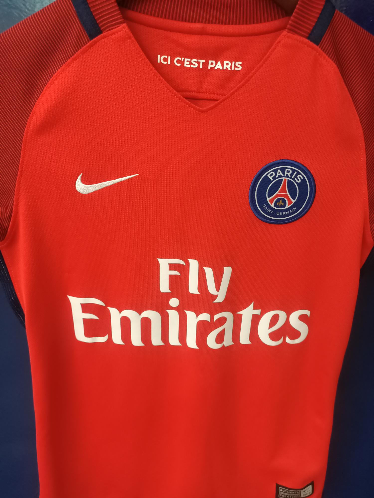 Crafted with Nike’s Dri-FIT technology, this lightweight, breathable shirt ensures comfort for young fans cheering from the stands, playing on the pitch, or wearing it casually. In solid condition, this authentic away kit is a must-have for young PSG supporters or collectors seeking a piece of the club’s illustrious history. Secure this classic 2016/2017 away shirt now and let your child shine with Parisian pride!