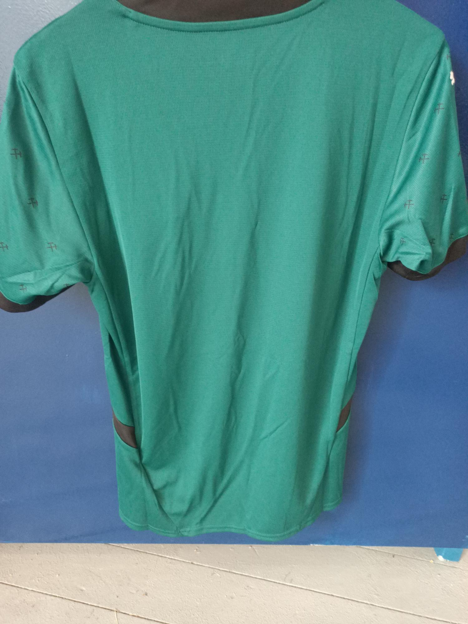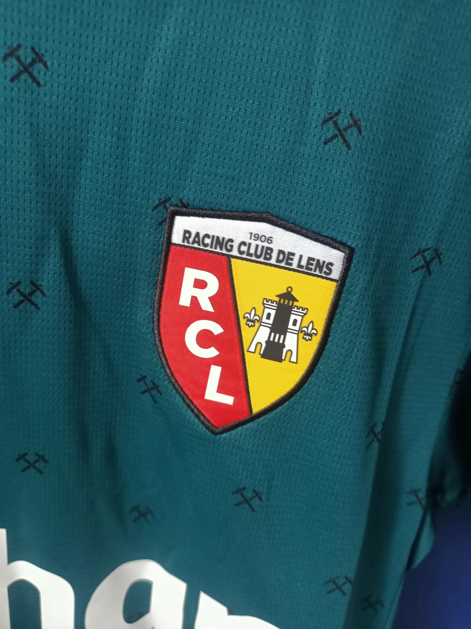 Bold Design: The shirt features a rich dark green base, accented with sleek black detailing on the collar and cuffs. A subtle pickaxe pattern woven into the fabric pays homage to Lens’ historic mining roots, while the phrase “FIERS D’ÊTRE LENSOIS” inside the collar celebrates the unyielding pride of the club’s supporters.
