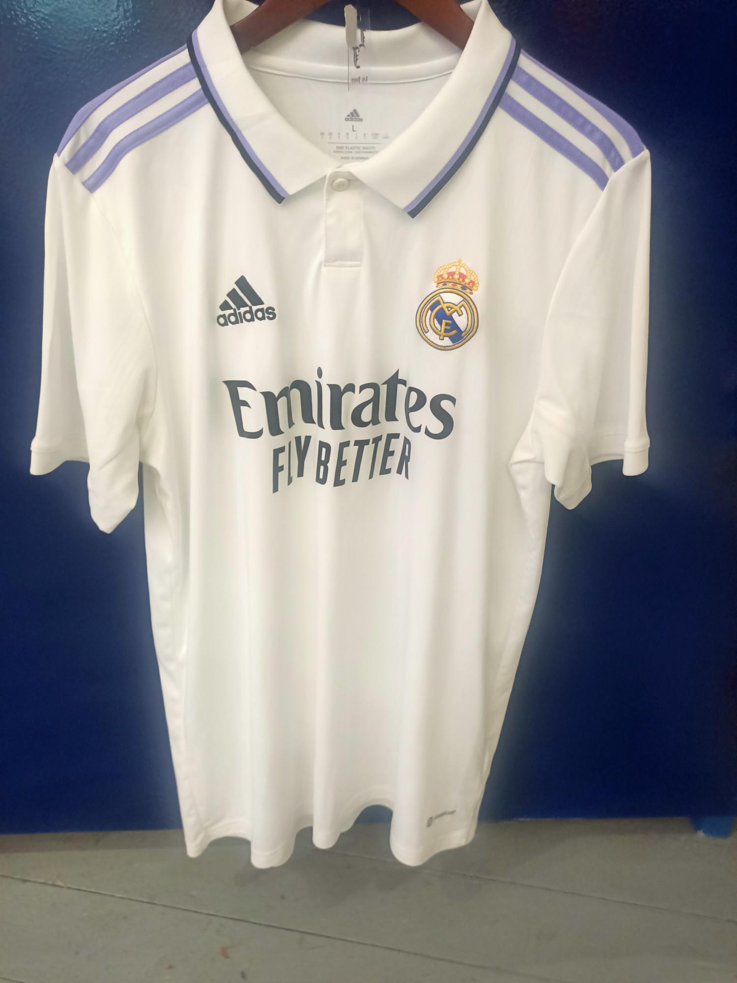 - Details: Full Champions League patch + starball on sleeves, La Liga patch, “¡Hala Madrid!” inner collar.